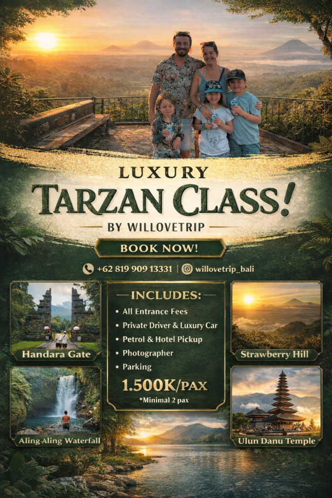 Discover the wild beauty of North Bali with our exclusive Tarzan Class day trip by WILLOVETRIP Bali. This unique experience takes you deep into Bali’s lush jungles, scenic mountains, and iconic cultural landmarks.